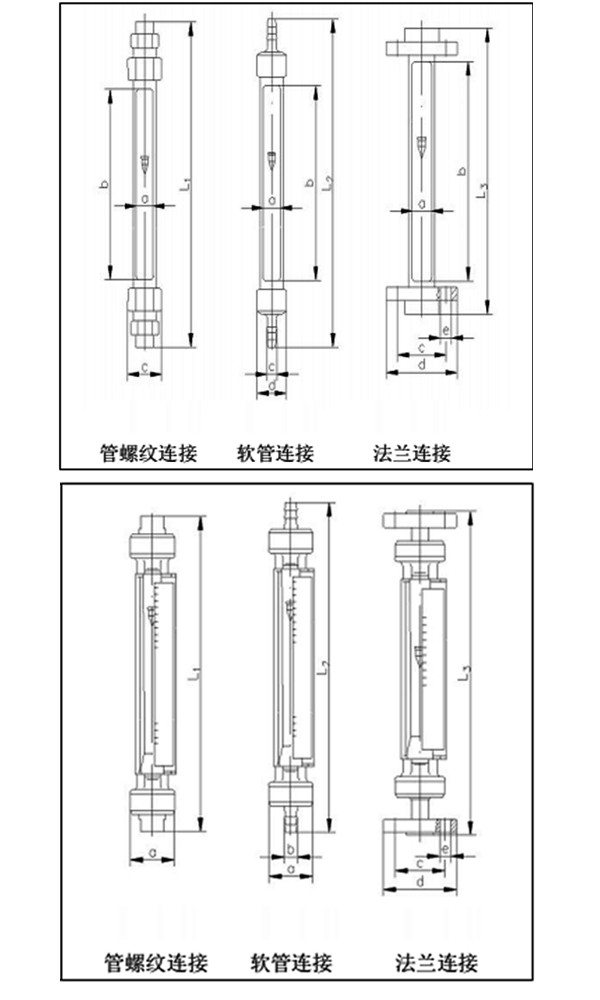 玻璃轉(zhuǎn)子流量計(jì)結(jié)構(gòu)圖: