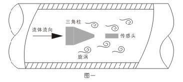 據來測量蒸汽,氣體及低粘度液體的流量。如圖一所示,在表體中垂直插入一根三角柱即旋渦的